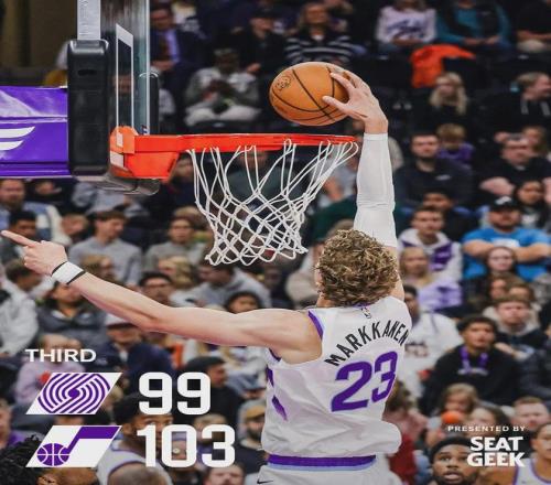 杨瀚森提升内线防守,但是当凯斯勒在弧顶持球,杨瀚森给予的防守压力不够,凯斯勒轻松传给空切篮下的马尔卡宁,上半场爵士至少有两个这种配合。半场战罢,开拓者64-60领先4分。霍勒迪和格兰特各砍13分,马尔卡宁13+2+4。