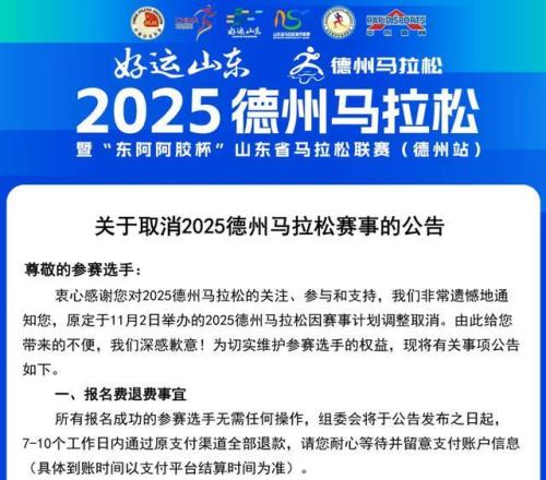 2025年融安半程马拉松也在赛事取消通知中提到:“因马拉松赛政策新规,赛事计划进行调整。”