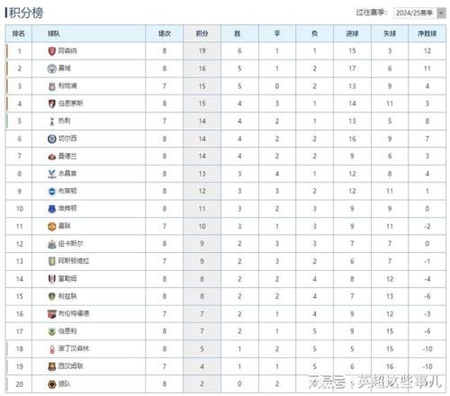 英超最新积分榜:阿森纳客胜3分领跑,曼城3连胜攀升第2!