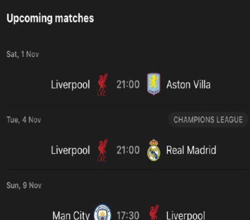 11月2号,利物浦先是在英超迎战维拉,5号则到欧冠对阵皇马,随后将在10日回到英超客场挑战曼城。短短8天内,利物浦就将迎来与三大强队过招,对于眼下的利物浦而言无疑是艰巨挑战。