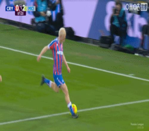 第89分钟,水晶宫队员互相让球,萨维尼奥单刀造点,哈兰德主罚命中,曼城3-0锁定胜局!