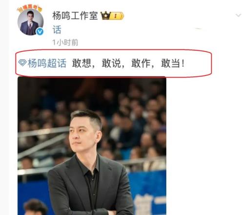 霸气!杨鸣工作室8字回应CBA争议吹罚:敢想,敢说,敢做,敢当!有球迷表示:杨鸣太霸气了,真给力!