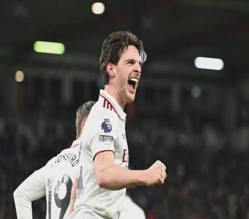 真正的传奇,永远诞生于逆境之中。下半场,身披41号战袍的赖斯化身“关键先生”,先是接厄德高横传贴地斩破门,随后又用冷静推射锁定胜局。这位25岁的中场核心全场贡献9.2分评分,80次触球、3次抢断的数据,诠释了何为“攻防一体”。赛后,阿尔特塔罕见地称赞:“他让我想起了维埃拉,那种覆盖全场的统治力。”