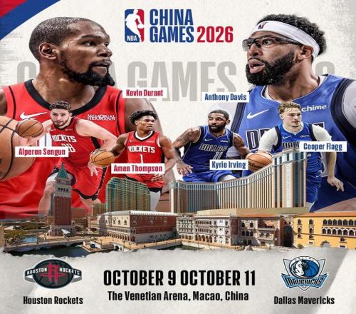 北京时间1月5日,NBA官方宣布,2026年NBA中国赛将会继续在中国澳门进行,交战的两支球队将是休斯敦火箭与达拉斯独行侠。