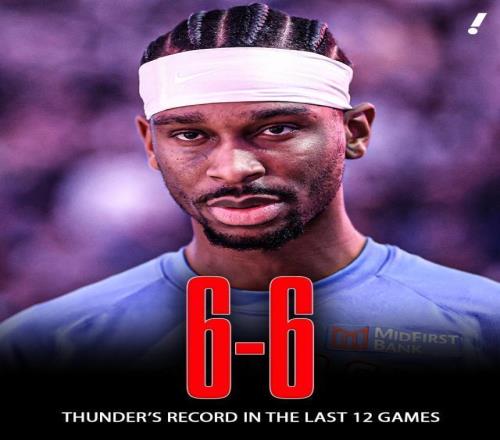 自2023-24赛季开始至今,联盟中没有任何球队的胜场数(156场)和胜率(77.2%)高于雷霆。当一支球队赢下超过四分之三的比赛时,他们很少有机会去适应连败,而雷霆在过去三周里已经两次遭遇连败,他们上赛季一共也只连败过两次而已。这些数字都提醒着我们,即便雷霆也是由凡人组成的队伍,他们也绝不是一支普通意义上的球队。那么究竟是什么导致了他们走下神坛呢?