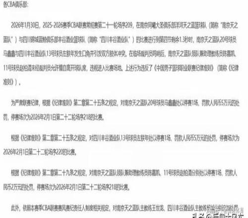 真是“屋漏偏逢连夜雨”啊,这不,四川男篮开赛21连败,至今还没“开和”,球队工资发放都成问题,却因上轮与同曦队发生冲突,收到了CBA公司罚单,主帅和球员分别受到罚款或禁赛的处理……