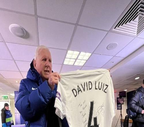 大卫路易斯送签名球衣给退休员工,后者为切尔西工作了56年