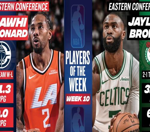 NBA周最佳球员:杰伦·布朗与伦纳德